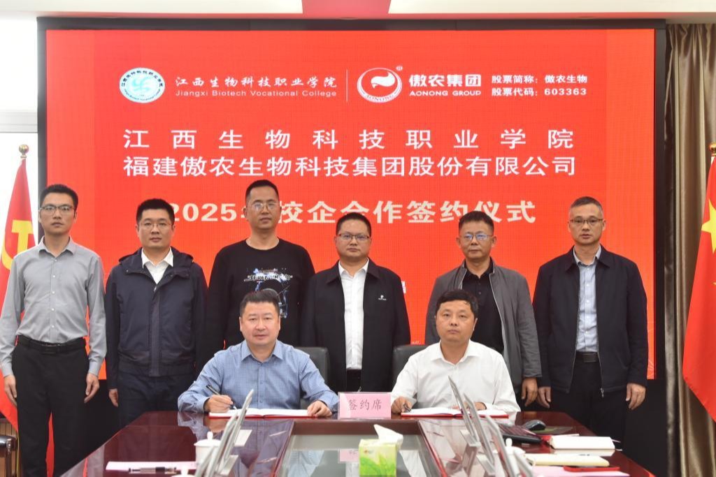 10月29日,江西生物科技职业学院与傲农集团校企合作签约仪式举行。学院党委书记姚丽华,副院长富国裕、詹绍成、王加文,傲农集团养猪事业部总经理叶俊标,人事总监胡超芳、叶俊松等双方代表共同出席签约仪式。