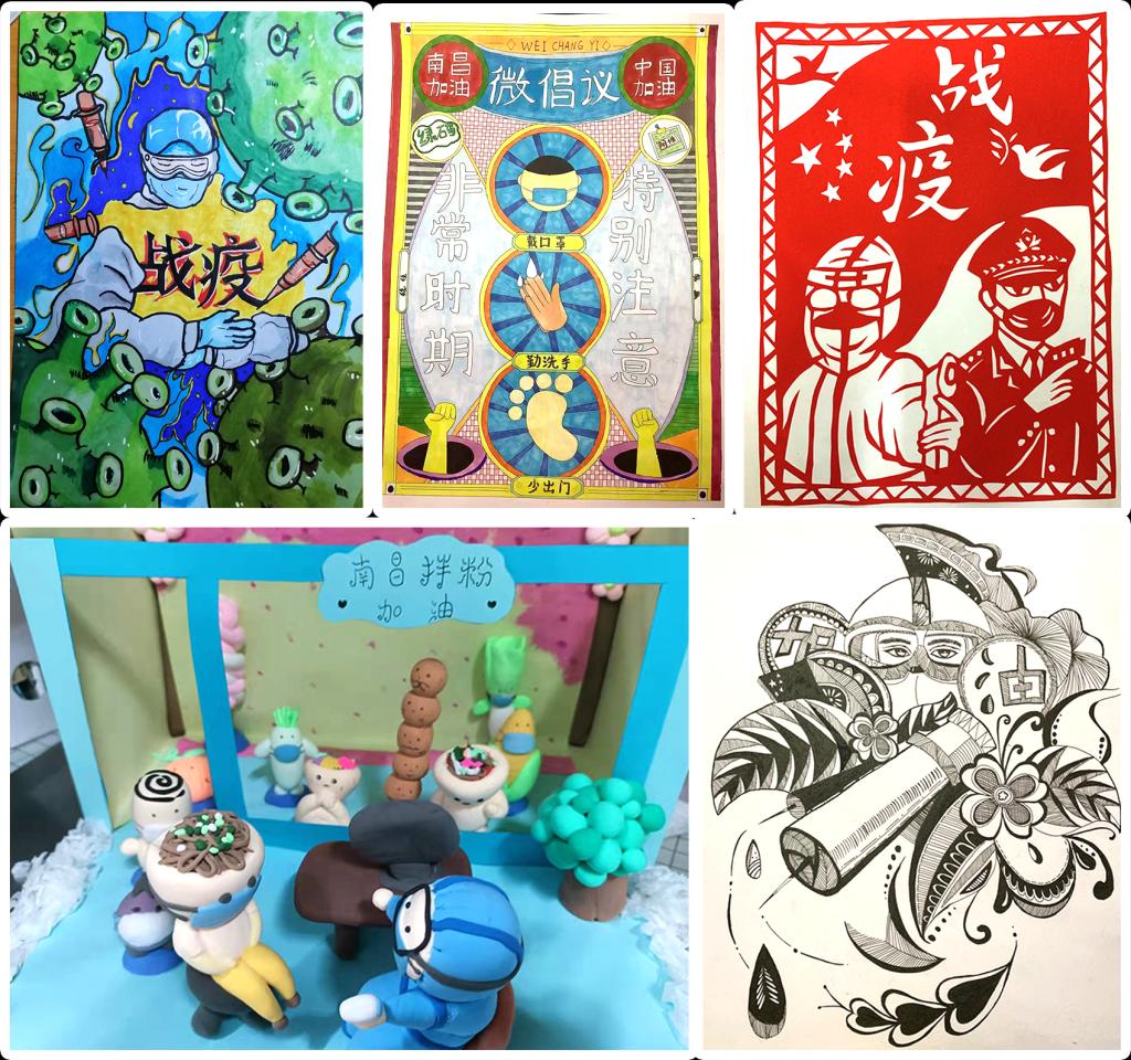 携手抗“疫”,一幅幅图文作品展现着抗疫医护人员及一线工作人员的坚守与奉献,一段段视频讲述着同学们对疫情防控终将取得胜利的决心与信心,一个个手工作品记录着我系志愿者工作期间的认真与负责,积极向上、充满能量。