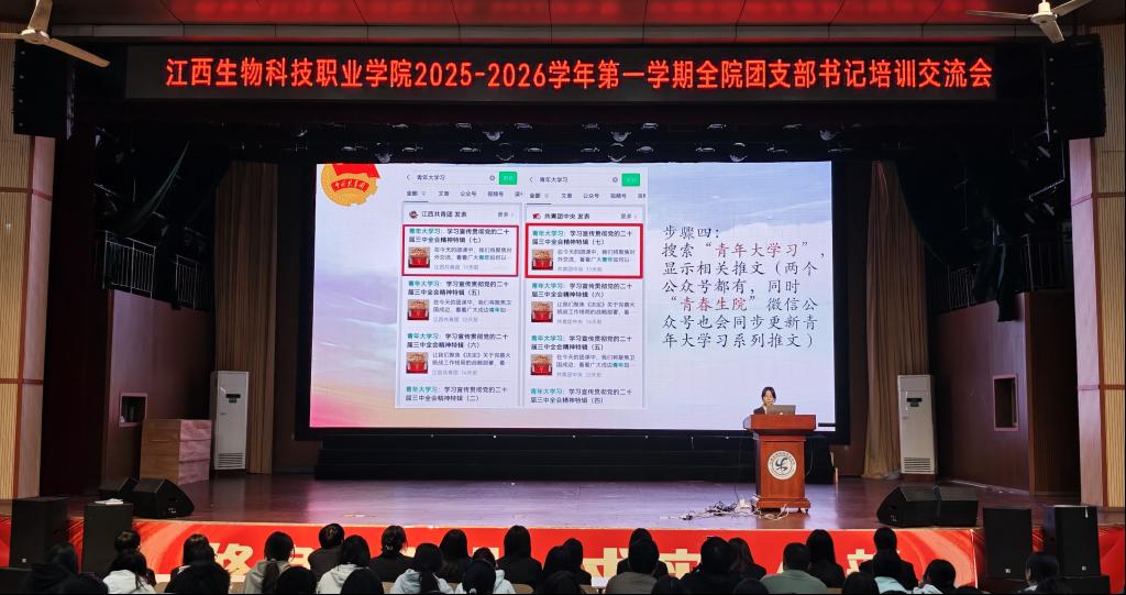 为加强我院基层团组织建设,进一步提高我院各班团支书的思想素质和工作能力,10月22日中午,我院团委于学院大礼堂组织召开了2025-2026第一学期团支部书记培训交流会,会议由院团委组织部成员主持,院团委老师出席。院系组织部成员及全院团支书参与会议。