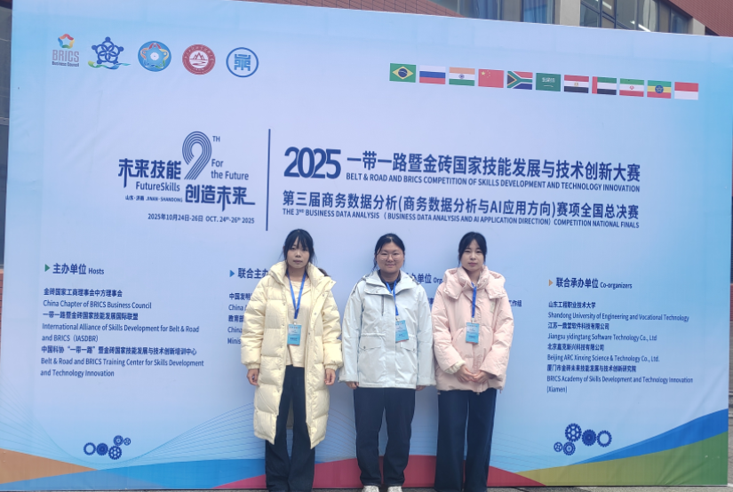 10月26日,2025一带一路暨金砖国家技能发展与技术创新大赛“商务数据分析与AI应用方向”赛项全国决赛在山东工程职业技术大学圆满落幕。我院信息工程系参赛团队凭借精湛的技术能力与创新的应用方案,从全国参赛队伍中脱颖而出(江西省仅两所高职院校入围全国决赛),成功斩获全国决赛三等奖。