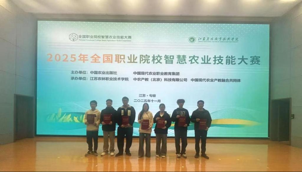 11月1日,我院信息工程系联合园林工程系组织学生参加在江苏农林职业技术学院举行的2025年全国职业院校智慧农业技能大赛中夺得第5名和第13名的好成绩,喜获一等奖与二等奖。