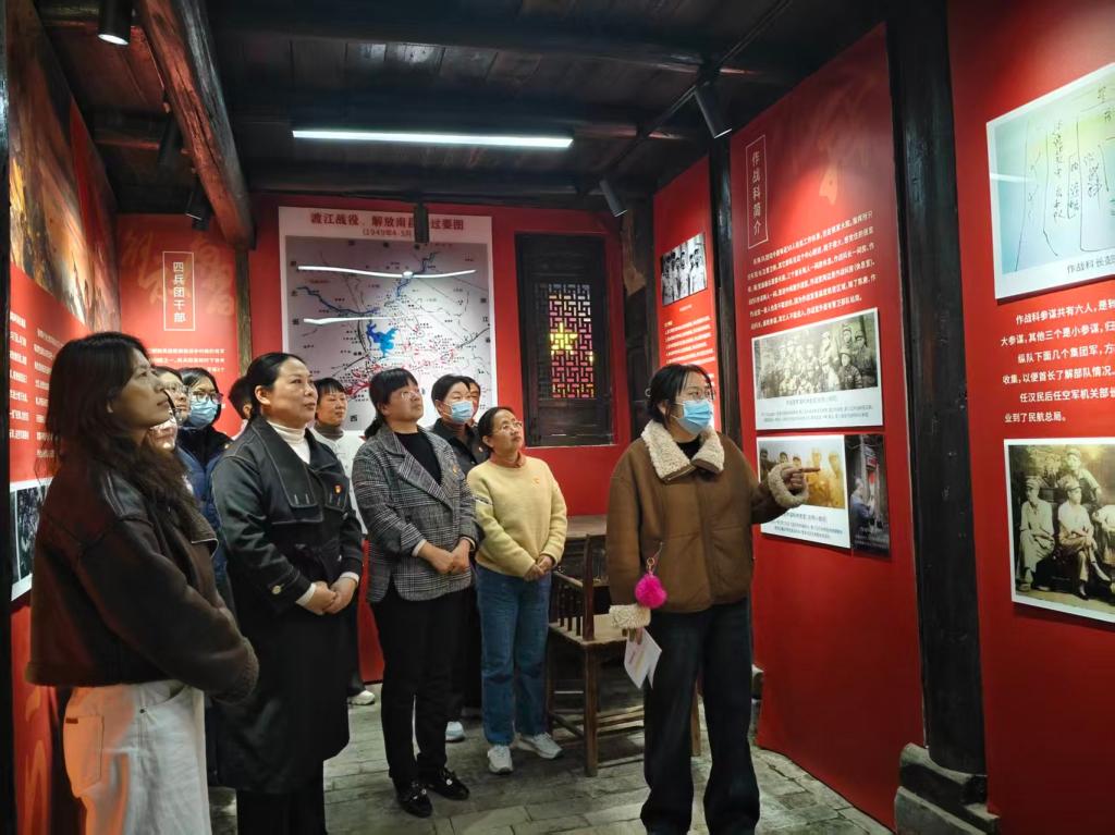 陈赓兵团斗门指挥部旧址是1949年渡江战役期间解放南昌的重要前指挥场所。在讲解员的引导下,党员们依次参观了作战指挥室、历史陈列馆等区域,通过一幅幅珍贵图片、一件件历史实物和详实的文献资料,深入了解了陈赓将军率领部队解放南昌的光辉历程。特别是展出的作战地图等实物,生动再现了当年革命先辈运筹帷幄、决胜千里的历史场景,让大家深切感受到革命先辈的卓越军事才能和坚定理想信念。参观过程中,党员们不时驻足交流,围绕“谢埠之战”等关键战役展开讨论。通过实地学习,大家对党的群众路线和艰苦奋斗精神有了更深刻的理解。