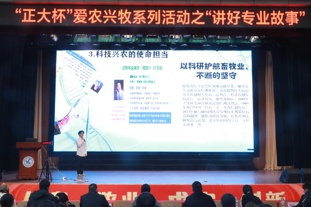 活动现场,十组参赛选手依次登台亮相。他们以饱满的热情、生动的语言,将畜牧兽医行业发展历程中的闪光人物与动人故事娓娓道来。选手们的演讲风格各异,或激昂澎湃、催人奋进,或深情婉转、引人共鸣,配合精心制作的图片、视频等多媒体素材,生动再现了行业前辈们筚路蓝缕、攻坚克难的奋斗画卷,深刻诠释了畜牧兽医事业在保障国家防疫安全、守护人民财产、助力乡村振兴等国计民生领域的重要意义,引发了现场师生的强烈共鸣。