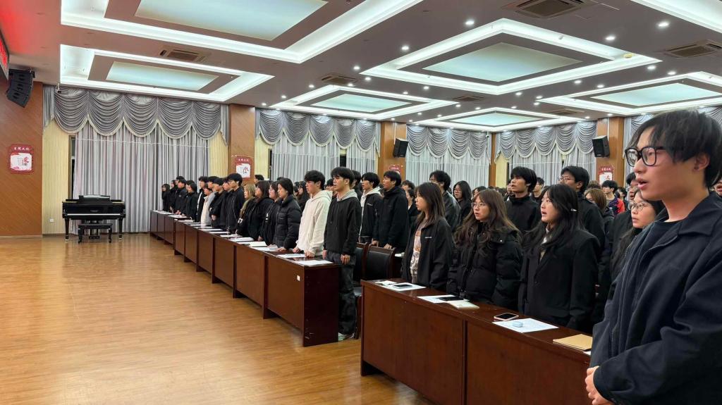 大会在庄严的国歌声中拉开帷幕,激昂的旋律凝聚起青年学子的责任担当与奋进力量。