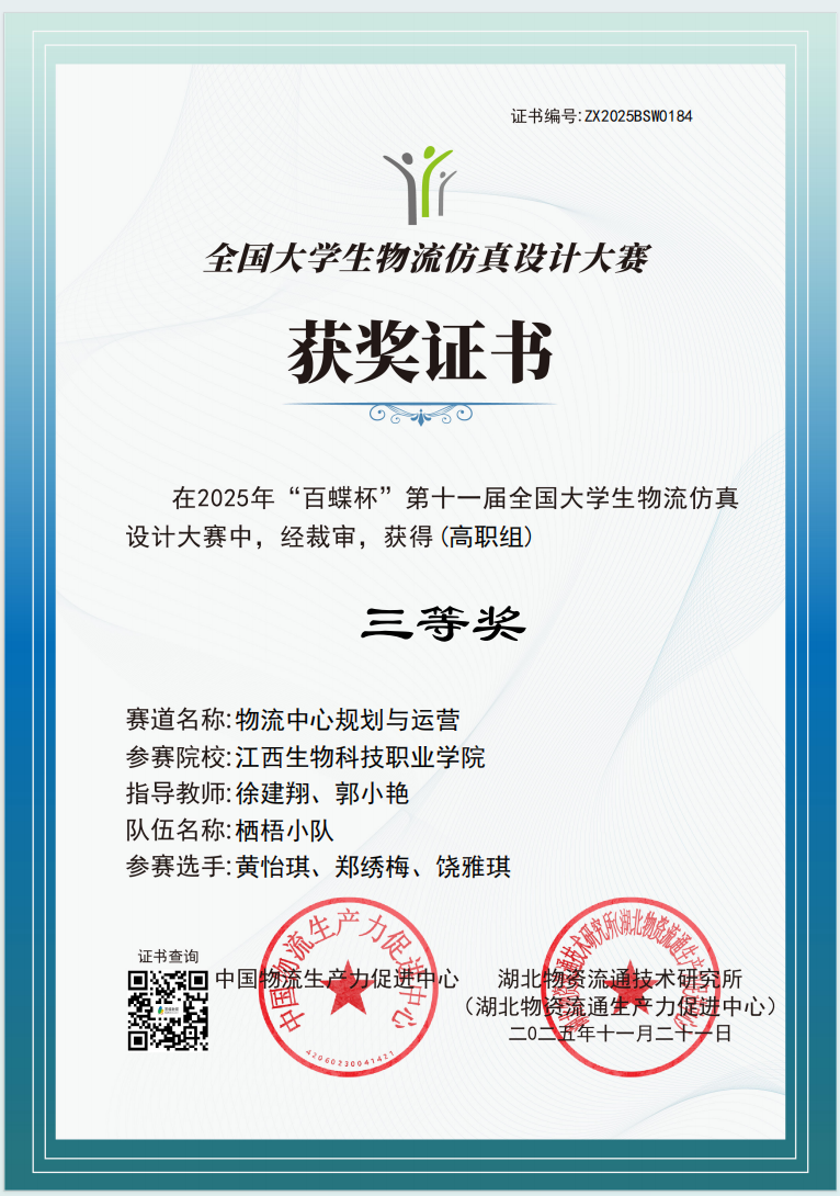 我院经济贸易系学生在2025年“百蝶杯” 第十一届全国大学生物流仿真设计大赛中喜获佳绩
