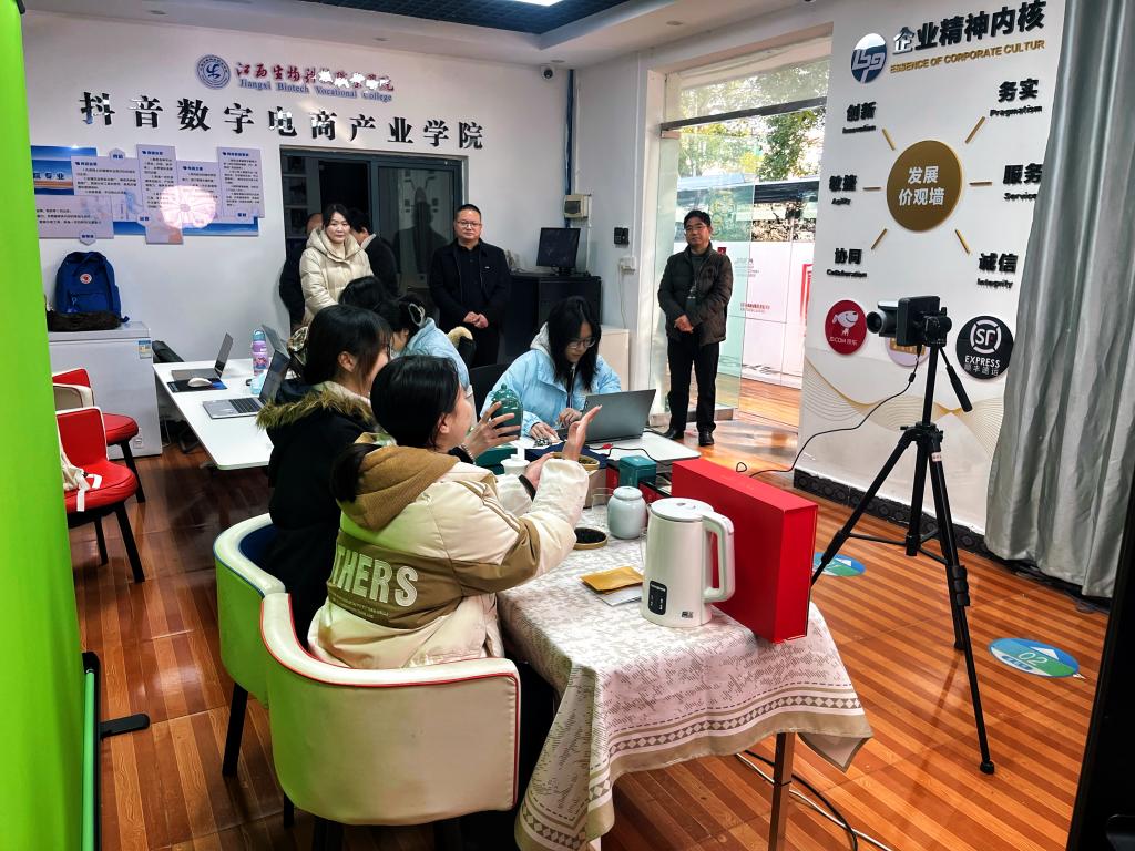 调研过程中,经济贸易系主任向学院领导一行详细汇报了抖音数字电商产业学院的建设背景、“专业共办、基地共建、师资共培”的协同育人模式,以及在课程开发、技能竞赛、就业孵化等方面的阶段性成果。产业学院负责人同步介绍了与企业合作开展的数字营销技能培训、乡村振兴直播助农等特色项目。