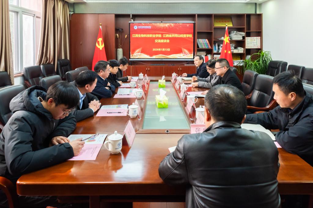 1月13日,江西省井冈山经贸学校党委副书记、校长王锋一行5人来我院调研交流,座谈会在学院知行楼三楼党委会议室召开。学院党委书记姚丽华,院党委委员、副院长宋君华、王加文出席会议,就业指导办公室、生物工程系、教务处相关部门负责人参加会议。会议由宋君华主持。