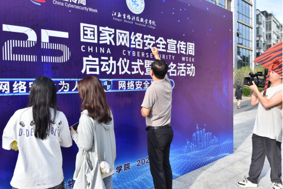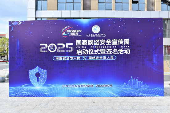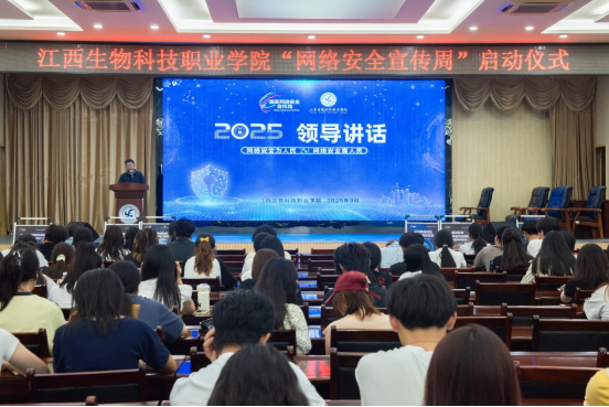 9月19日下午,江西生物科技职业学院以“网络安全为人民 网络安全靠人民——以高水平安全守护高质量发展”为主题的2025年网络安全宣传周启动仪式在知行楼二楼多功能厅隆重举行。院党委委员、副院长詹绍成出席活动并发表讲话,相关职能部门负责人及师生代表共180余人参加了此次启动仪式。