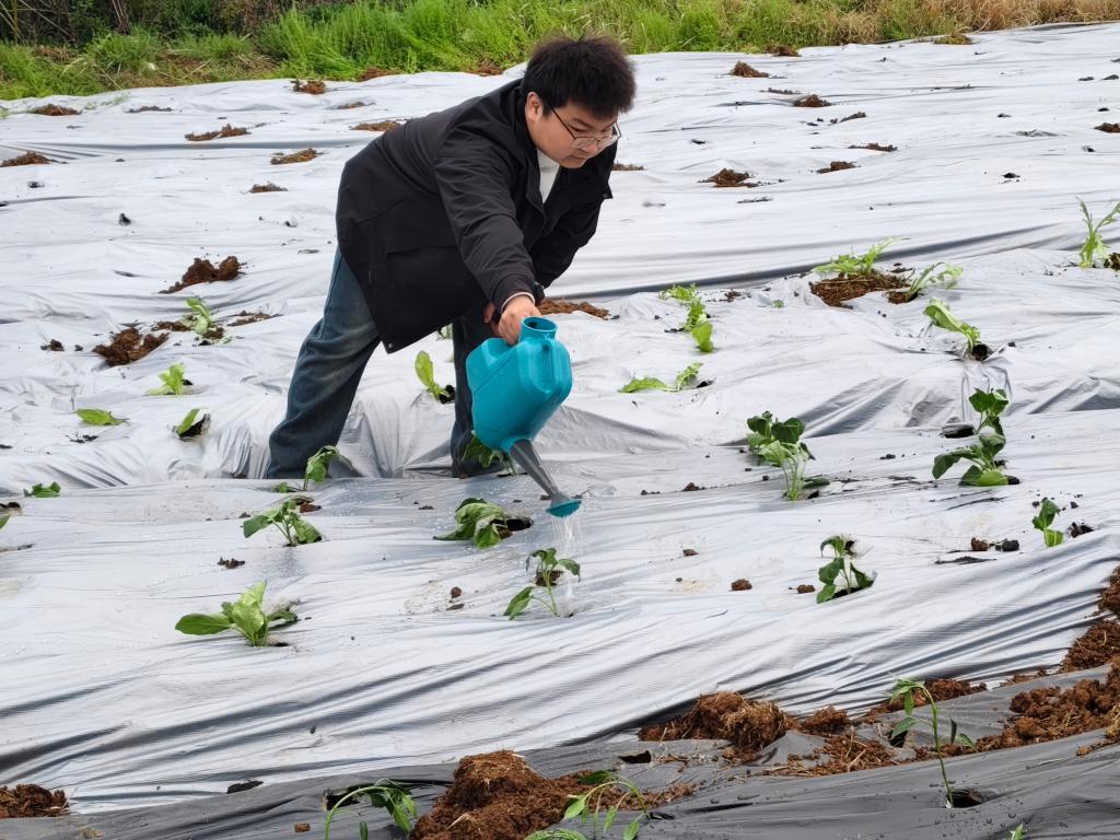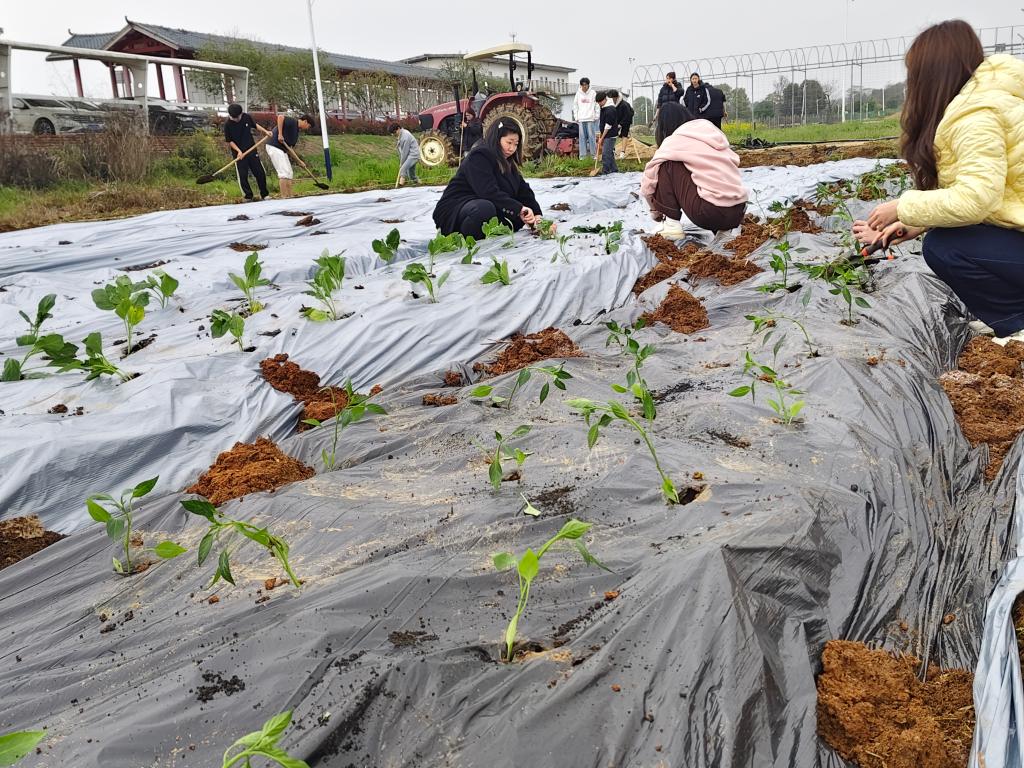 活动当天,科技园老师提前抵达现场,结合基地种植经验,为同学们细致讲解土壤翻整的技巧、果蔬幼苗的生长习性及栽种要点。随后,师生们分工协作、干劲十足。有的挥锹翻松土壤,将板结的泥土敲碎整平;有的小心翼翼移栽幼苗,扶苗、培土、压实;还有的细心浇灌清水,为幼苗扎根生长提供养分。汗水浸湿衣衫,却挡不住大家的热情,同学们在亲手劳作中,真切体会到农耕的不易与丰收的期待。