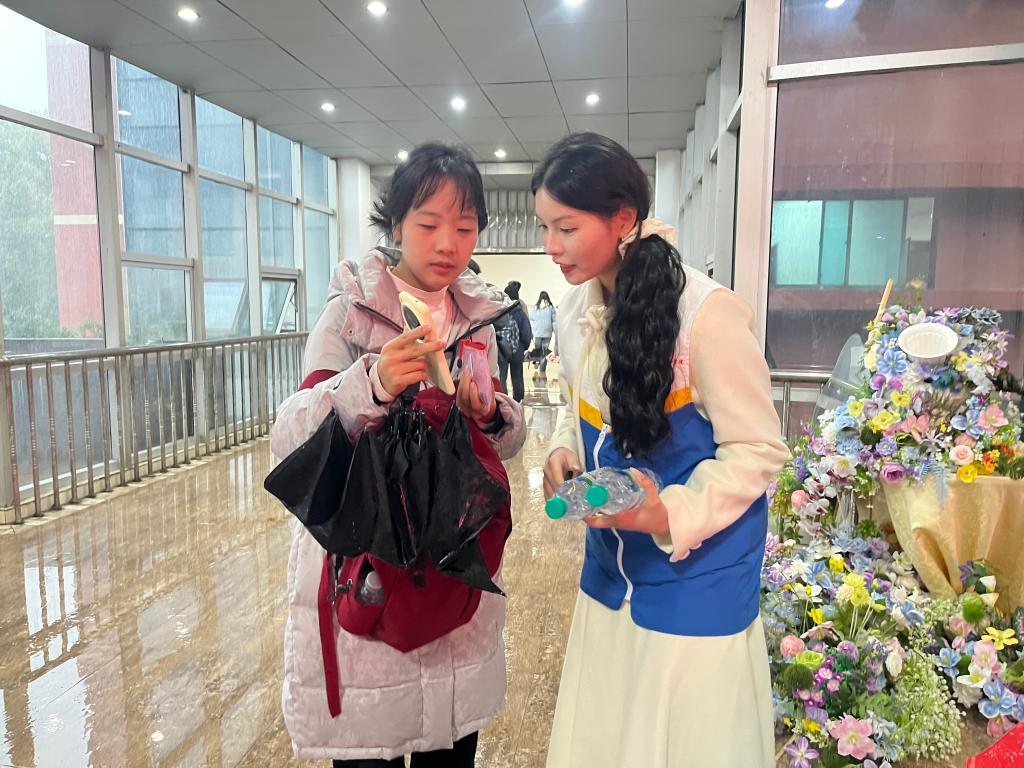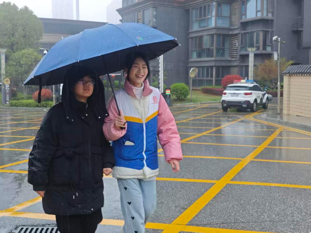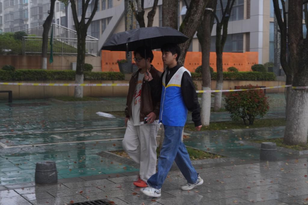志愿者们无惧风雨、提前到岗,从考场指引、身份核验、咨询答疑到应急帮扶,全程坚守在校园各服务点位,用细致服务为考生遮风挡雨、保驾护航。在入校核验区,志愿者耐心解答考生疑问,协助快速核验身份信息,维持入场秩序;在校园主干道、明德楼、知行楼等关键点位,志愿者主动撑伞引导考生前往考场,贴心护送考生安全抵达;在咨询服务处,他们主动为考生及家长提供考场须知、饮用水补给等温馨帮助,让阴雨天气中的赶考之路充满温暖。