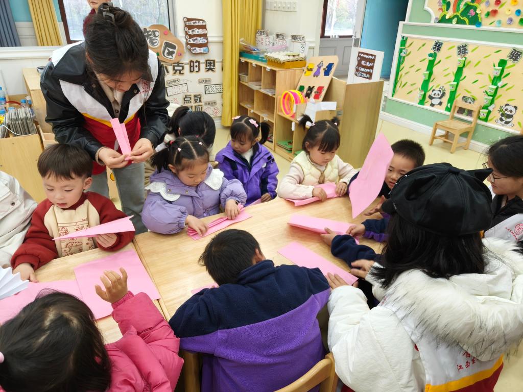 活动中,志愿者们与小朋友亲切互动,共同开展趣味游戏和折纸教学。孩子们在志愿者的耐心指导下,折出五颜六色的小动物和花朵,现场欢声笑语不断。活动尾声,志愿者与小朋友们齐唱儿歌,稚嫩的歌声与温暖的旋律交织,营造出温馨动人的氛围。