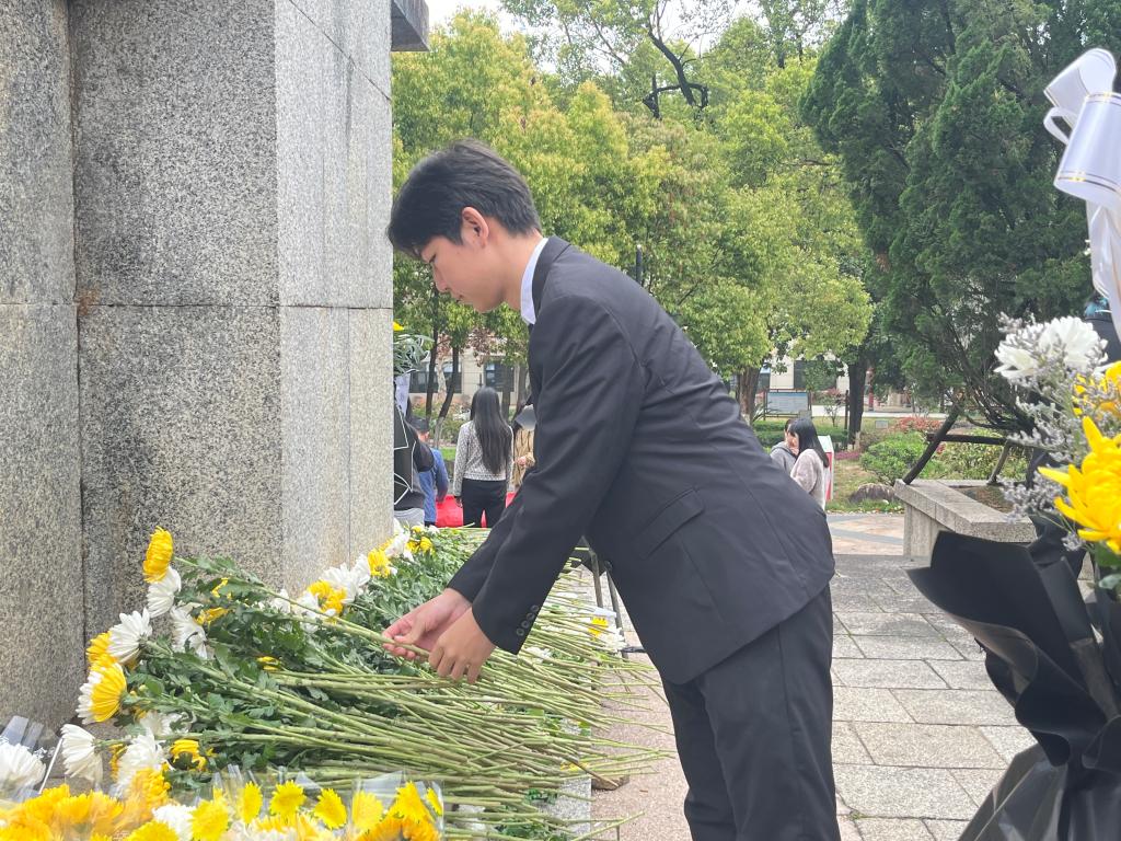 活动现场庄严肃穆,全体人员整齐列队、神情肃穆。学院党委委员、副院长王加文代表学院向革命烈士敬献花篮,整理缎带,表达对先烈的崇高敬意与深切缅怀。全体人员肃立默哀,深切缅怀革命先烈的英勇事迹与崇高精神。师生代表手持鲜花,依次缓步走向烈士纪念塔,环绕瞻仰革命烈士纪念塔,以朴素而庄重的方式告慰英灵。