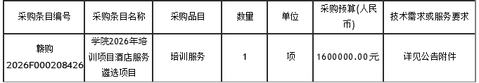 江西生物科技职业学院2026年培训项目酒店服务遴选项目 招标项目的潜在投标人应在 江西省公共资源交易平台(网址:https://www.jxsggzy.cn)获取招标文件,并于2026年05月07日09点30分 (北京时间)前递交投标文件。
