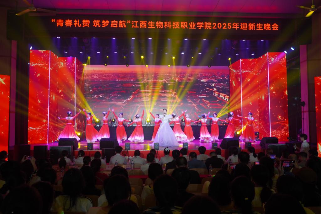 开场舞《唱支山歌给党听》,以优美的舞姿和饱满的热情拉开晚会序幕,瞬间点燃全场氛围;教育艺术系的《烽火岁月初心在,青年奋进薪火传》,通过歌舞融合的形式,带领新生回望历史,感悟青年使命;机电工程系的《在太行山上》以激昂的旋律和动人的表演,传递爱国情怀;经济贸易系的《星汉鎏光,梦起芳华》用青春舞姿与动听歌声展现逐梦决心;生物工程系的《我爱你中国》用深情演绎表达对祖国的无限热爱;信息工程系的《勇往直前》展现新生们敢于拼搏、一往无前的精神风貌;园林工程系的《天耀中华》用动人表演抒发对祖国的赞美;动物科学系的《追寻》传递对梦想的执着追求。