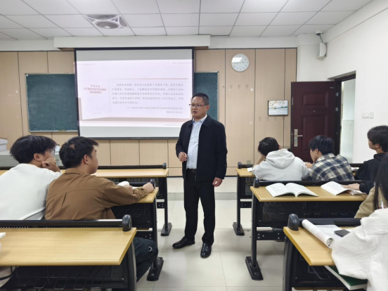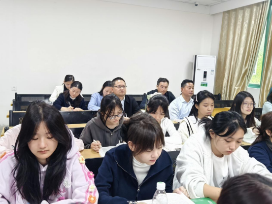 整堂课气氛活跃、师生互动热烈,教师综合运用视频直观教学、案例沉浸式教学、情境互动教学等方式,将理论深度与现实温度有机融合,以创新的教学设计充分激发学生思考,切实推动思政教育入脑入心。听课期间,姚丽华、王松华两位院领导全程专注聆听,细致记录教学重点,密切关注课堂组织情况与学生学习状态。