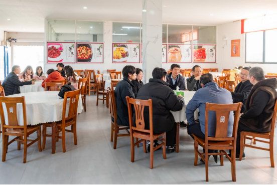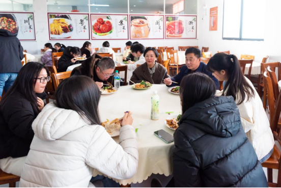围坐共餐话日常,倾听心声聚温情。午间时分,领导们走进学生食堂,开展“师生同餐话家常”活动。在温馨的用餐氛围中,学院领导和老师与学生围坐畅谈,“这道菜价格怎么样?够不够下饭?”“你们平时更喜欢清淡口味还是稍重口味?”领导们一边用餐,一边主动开启话题,从饭菜价格、口味偏好问到营养搭配,句句贴近学生日常。学生们也渐渐放开拘束,聊学习、聊生活、聊兴趣爱好,欢声笑语伴着碗筷轻响回荡在餐厅里。“餐桌上的交流”让育人工作充满烟火气。