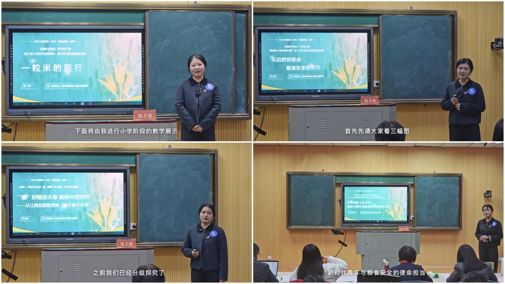 在教学展示环节,团队教师们精心设计“问题链”,以“守护粮食安全”为主线,不同学段教学定位与核心目标在设计上各有侧重,保障不同学段的教学既各有特色又相互关联,为教学带来新的活力。同时在纵向衔接上注重构建农业认知体系,着力构建循序渐进的学习路径。