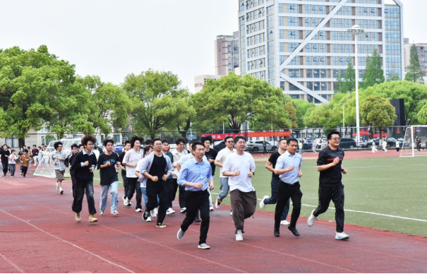 随着发令枪响,院领导、老师与同学们并肩冲出起跑线。一时间,田径场上身影跃动,同学们有的如离弦之箭,奋力领跑;有的则三五成群,彼此鼓励,在挥洒汗水中诠释着运动的喜悦。此起彼伏的加油声、欢笑声与有力的脚步声交织在一起,让春天的校园充满了蓬勃的生命力。