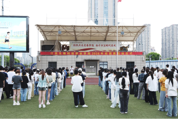 运动燃激情,梦想新启航。4月9日下午,学院田径场上青春涌动。为深入实施大学生体质提升专项行动,落实“健康第一”的教育理念,学院举行“阳光奔跑,青春同行”2026年校园跑启动仪式。学院党委委员、副院长王松华、杜竞,宣传部、基础部相关负责人与各系书记、辅导员代表、全体体育老师及近千名学子共同参与,开启全年活力健身新篇章。启动仪式由杜竞主持。