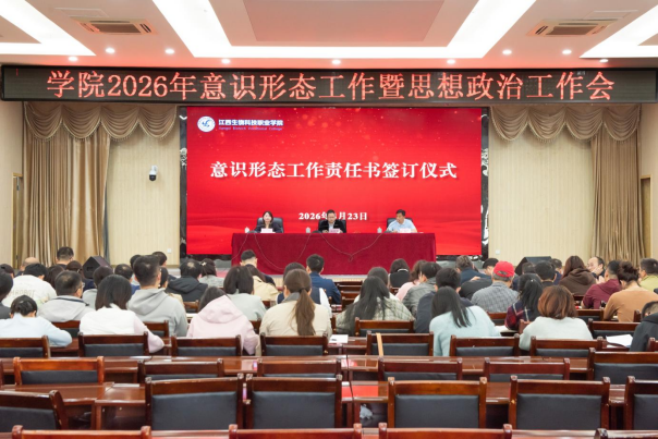 会上举行了学院意识形态工作责任书签订仪式,学院党委书记与各部门主要负责人、各基层党支部书记现场签订了《2026年度意识形态工作责任书》。