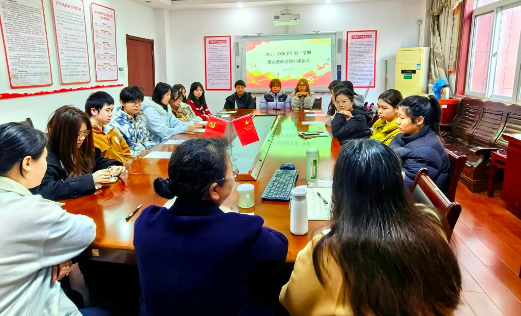 11月28日下午,思政教研室召开《毛泽东思想和中国特色社会主义理论体系概论》课程师生座谈会,思政课教师代表、2024级各系学生代表参会,教研室主任主持会议。